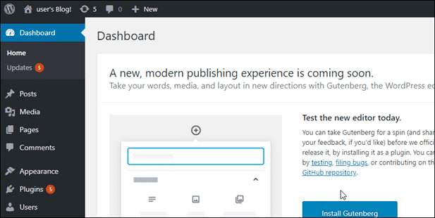 7. You should now see your WordPress dashboard.
